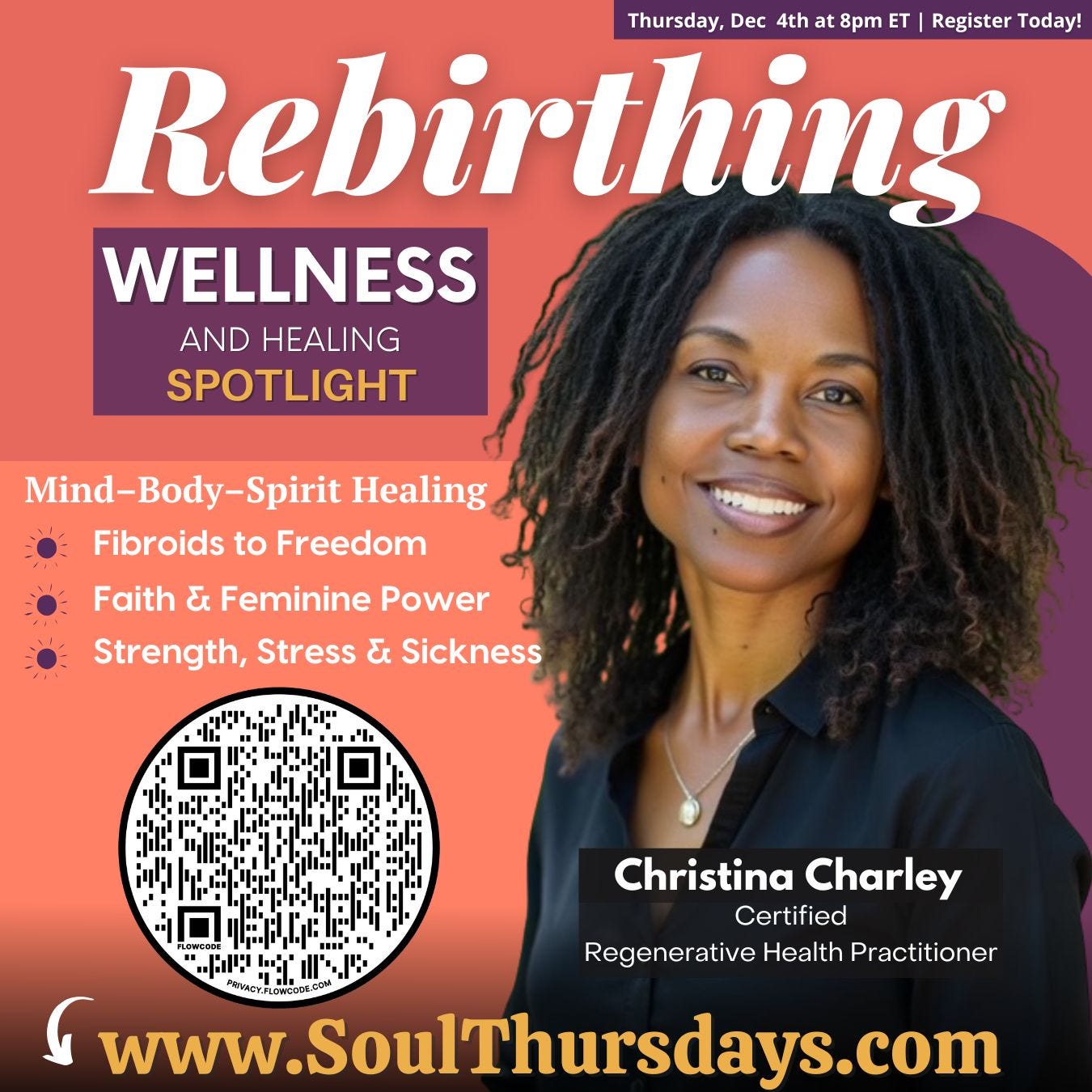 This Thursday, we sit down with Christina Charley, Certified Regenerative Health Practitioner and founder of The Rebirth Movement — a woman who turned fibroid crisis, emotional shutdown, and spiritual depletion into a midlife transformation.